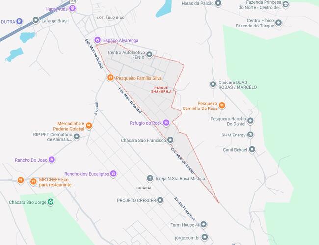 Parque Shangri-lá, situado nesta cidade, no bairro de Goiabal, com frente para a rua 6, mede