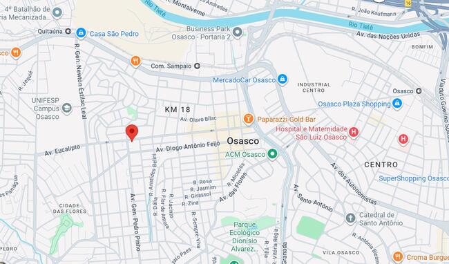 Imóvel localizado na Av. Hildelbrando de Lima, nº 1081, esquina com a Av. General Pedro Pinho, Km. 18, Osasco - SP.